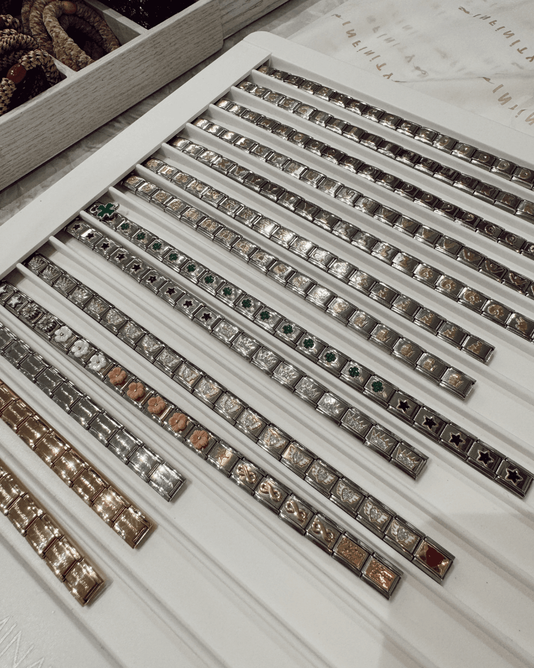 Charmsarmbånd finnes i flere varianter, men nå er det de små firkantede med symboler på som gjelder. Det kan for eksempel være en stjerne, en bokstav eller et stjernetegn. Det var merket Nomination som startet med disse armbåndene, og nettopp de kan du nå finne hos Infinity på Horisont. Her finner du i variantene sølv, gull og rosé, i tillegg til massevis av fine charms eller "links" som de også kalles.